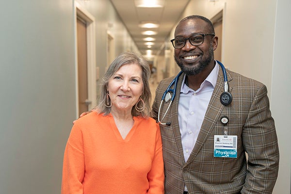 With a successful overnight stay, Marcia was then transferred to a step-down unit and sent for a transesophageal echocardiogram (TEE). The team needed to determine if she had any heart issues that could have caused her stroke. She was diagnosed with a patent foramen ovale (PFO), a condition in which a small opening remains between the heart's two upper chambers after birth. With this confirmed, they knew they would need further testing of Marcia's heart. Stephen Boateng, MD, a WakeMed cardiologist, ordered a wearable heart monitor, so he could determine if the PFO or another heart condition caused the stroke.