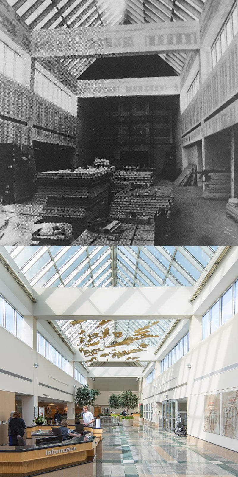 BOTTOM: Main lobby at WakeMed Cary Hospital (present day)