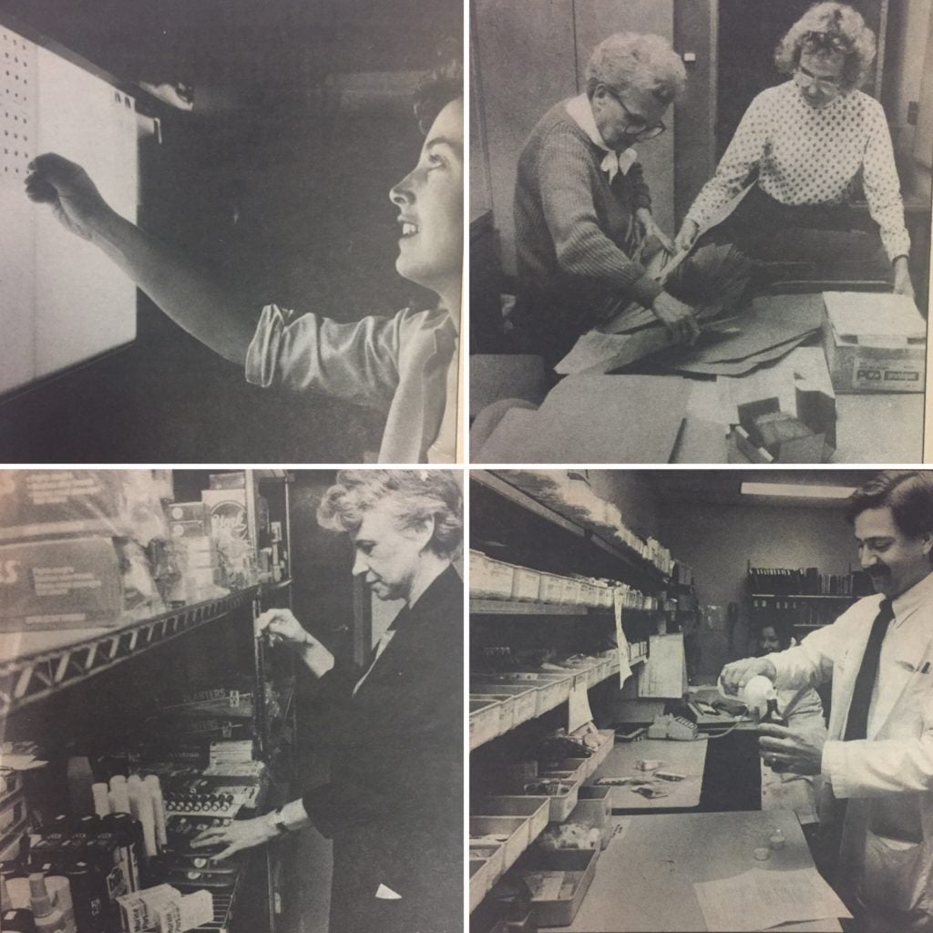 BOTTOM LEFT: Elizabeth Butzke stocked the gift shop’s shelves in preparation for Cary Hospital’s grand opening back in 1991.