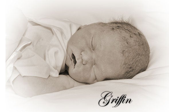The nurse placed him in my arms, and my first words to him were, “I love you, Griffin.” He had a head of fuzzy, dark hair and full cheeks that I gently kissed over and over again. He was perfect and so still.
