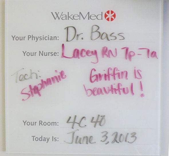 We give thanks to God for the honor of being Griffin’s parents, and we give thanks to WakeMed for being with us through our journey.
