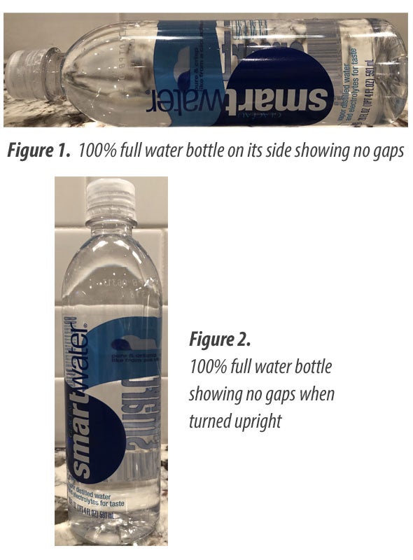 Think of a water bottle (Figure 1). When it is completely full, it doesn’t matter which way you turn the bottle (upright, on its side, upside down), there is always fluid in every space (Figure 2).