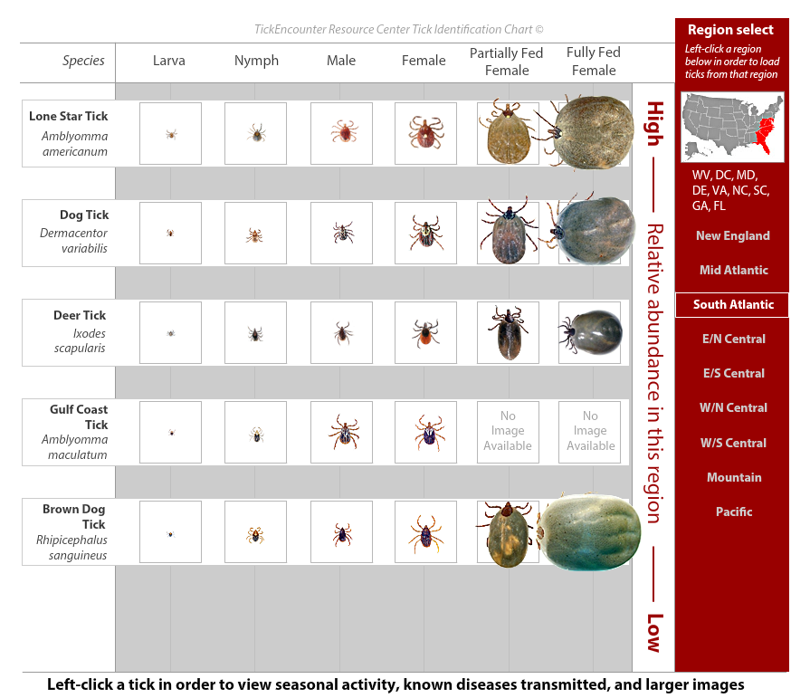 There are several types of ticks and identifying them can provide helpful information for your healthcare provider . The following chart will help you identify the different types of ticks that you may come across in our area. [source]
