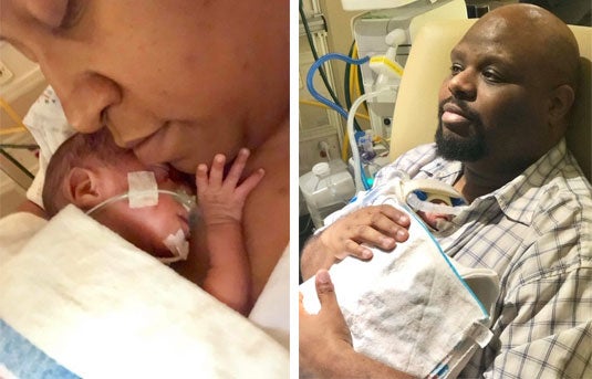 Christian was born at 28 weeks and we had to wait 10 days before we could hold him. Being able to Kangaroo brings a bond that is unexplainable… I could feel his fight. I could also feel the love. You feel your child relax and a peace comes over them that transfers to you as a parent. Even with all the nose of machines around you, the wires or tubes, and the light chatter of conversations happening in the nursery, somehow with Kangaroo care time stands still and it’s just you and your little fighter… and all is well with the world!