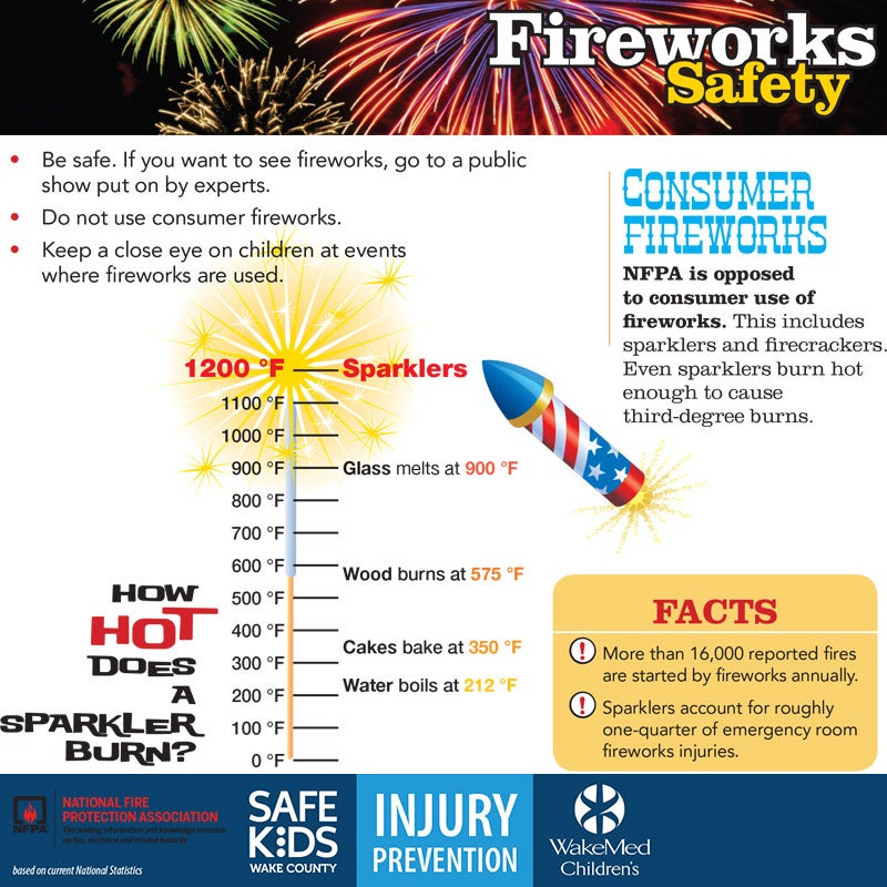 #8 – Give sparklers to children under the age of five. Sparklers can reach a temperature of 1200 degrees! If not used safely, they can and do lead to severe burns.