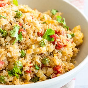 - Add cauliflower “rice” and season with sea salt and pepper to taste.