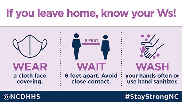 The North Carolina Department of Health and Human Services emphasizes the three W’s when leaving your home: