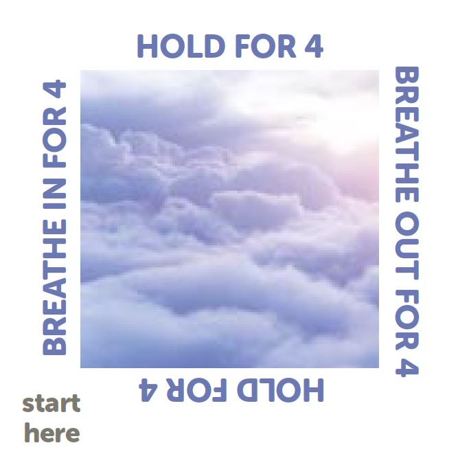 - Take time to yourself to reflect through meditation, journaling or prayer. Deep breathing techniques – like square breathing (see image, right) – are helpful when you are feeling overwhelmed or stressed.