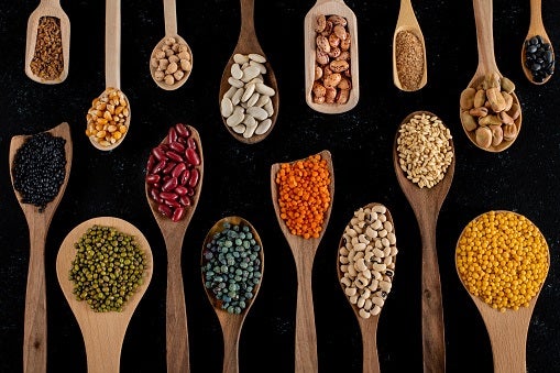 Legumes including black, red, kidney, garbanzo beans, soybeans and peas.