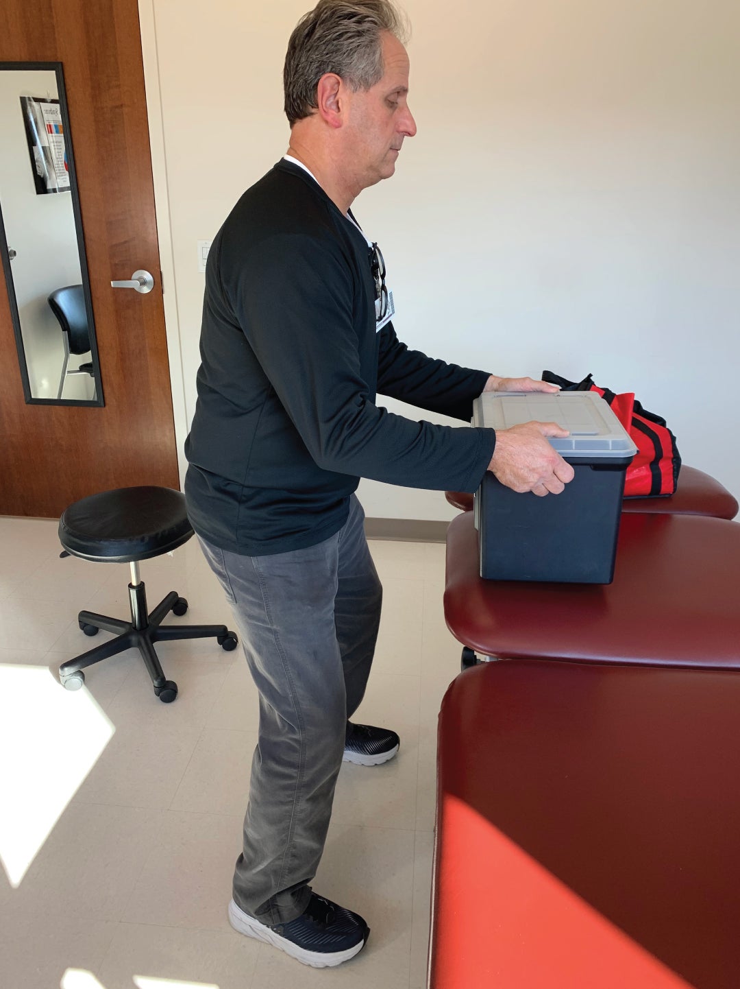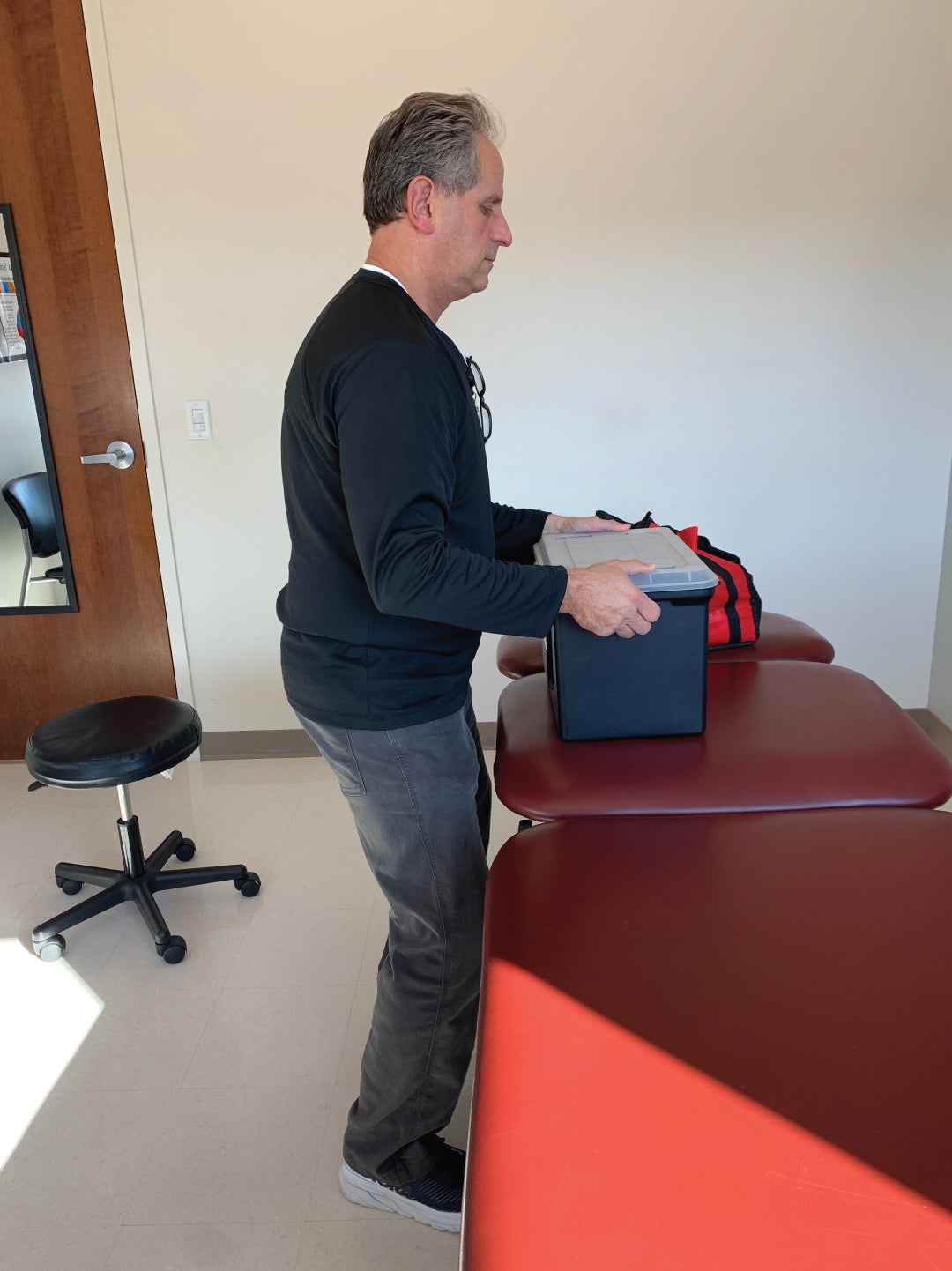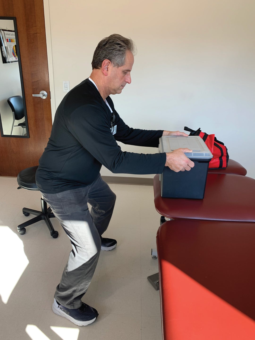 Most health professionals that I treat say they were taught to bend at the knees to lift a patient. We then have a conversation about how to flex at the hips first like a hinge, and then we flex at the knees to lift a patient or any object safely. Learning how to use the hip muscles to lift, will help reduce forces over the back and knees.