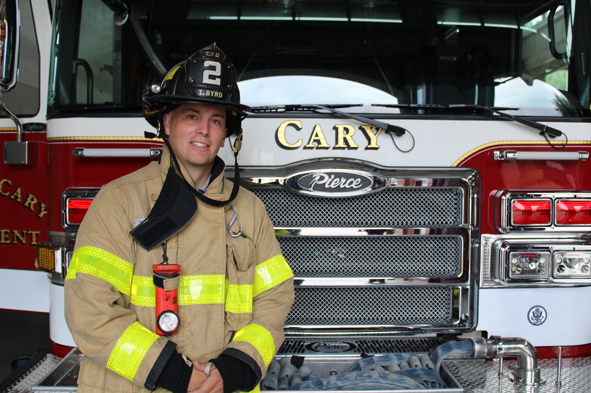 “I became a firefighter because my friends were doing it after high school and said it was a blast, so I joined, loved it and decided to make a career out of it. I started out part-time with the Clayton Fire Department. I became a career firefighter in 2011 with the town of Zebulon. I was then offered a position with the Cary Fire Department. I have been there since 2015.”
