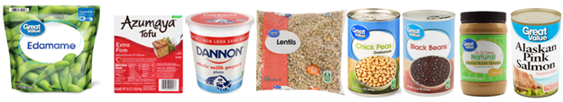 Shelf-stable protein choices include canned and dried beans, canned fish, nuts and seeds.