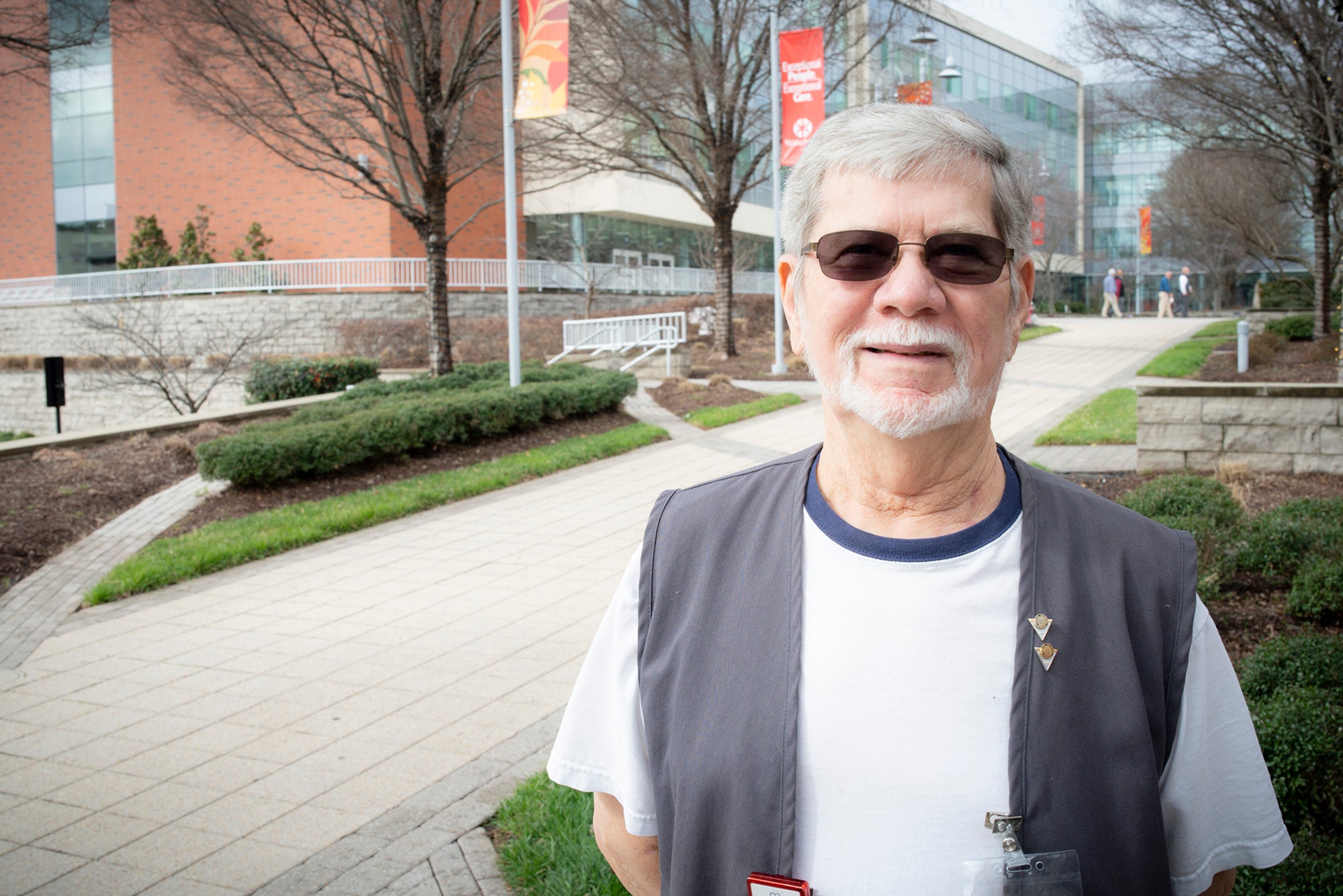 In 2010, after the heart transplant, John spent some time in a hospital cardiac rehab program and then went on to volunteer for that program. After that program shut down, he decided he wanted to continue his volunteerism and joined WakeMed in 2017.