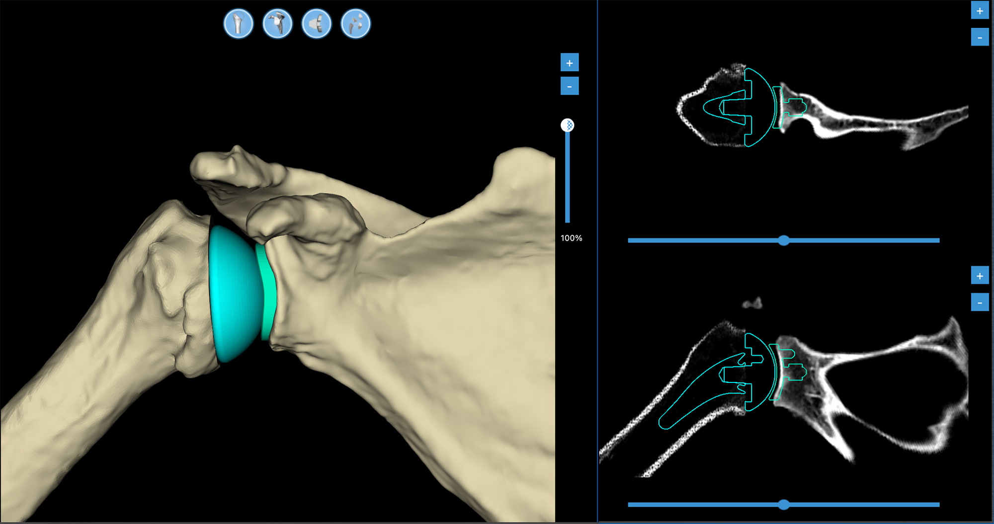 While traditional and reverse shoulder replacement surgery are effective options for the treatment of shoulder arthritis, the use of advanced technology via 3D visualization is providing orthopaedic surgeons a new option for optimal patient outcomes. By combining CT scans with three-dimensional (3D) images and models, surgeons can determine the implant type, position and location before surgery. A 3D model is used during surgery as a guide to help optimize implant positioning and minimize bone loss, which can increase longevity of the implant and aid in patient recovery time.