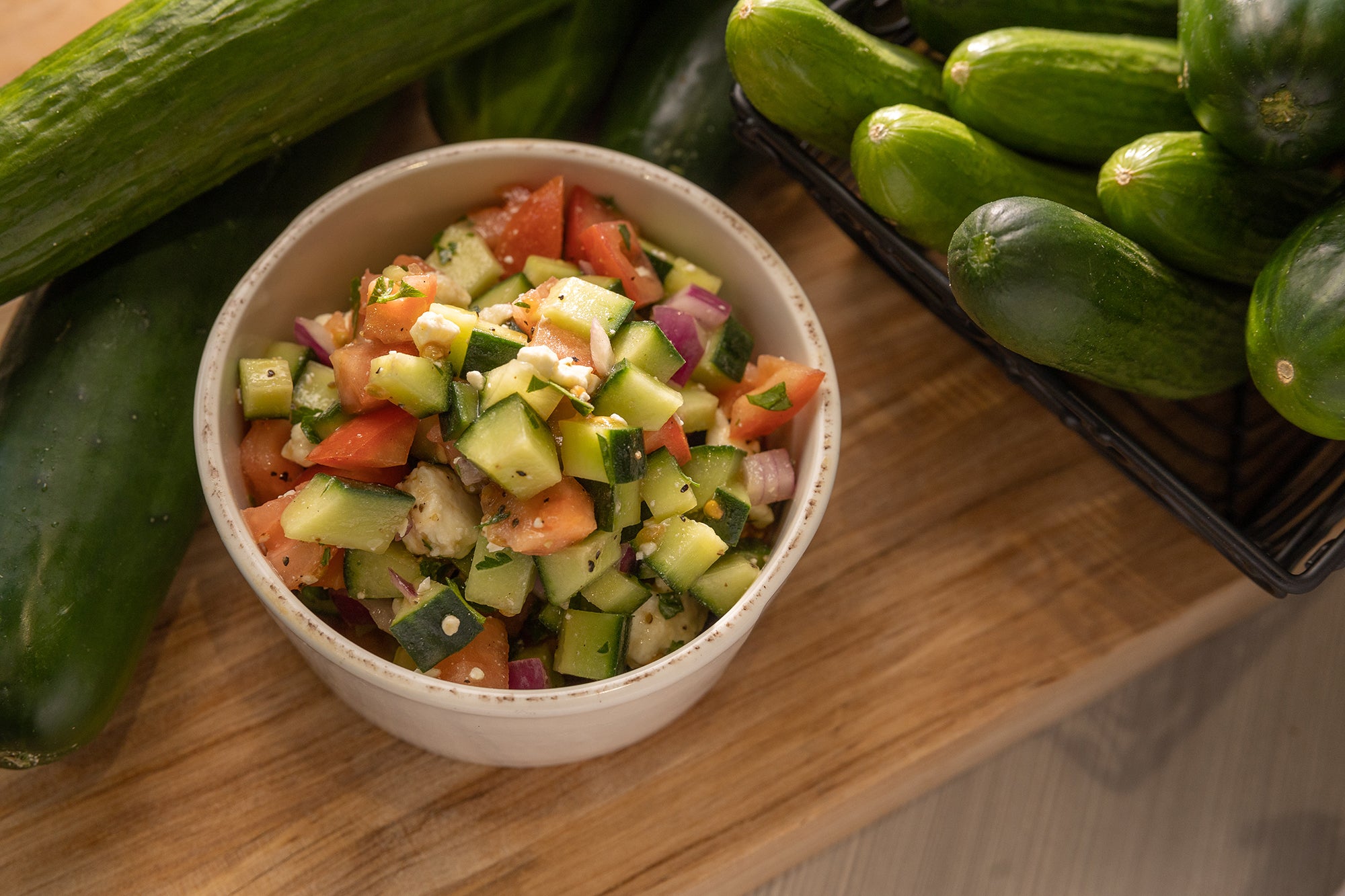 - Salads: Cucumbers make a crunchy and refreshing addition to any basic green salad, especially when paired with other summer produce, like sweet corn, tomatoes, and scallions. Or try bell peppers, olives, and feta cheese for a Greek-inspired twist.