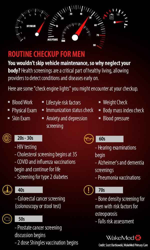Vehicle maintenance doesn’t make a car run better, but it keeps it running as well as it is. Similarly, getting an annual wellness checkup won’t turn back the hands of time, but it could prevent a man’s health from declining and provide him with steps to improve his lifestyle or get back on the road to recovery.