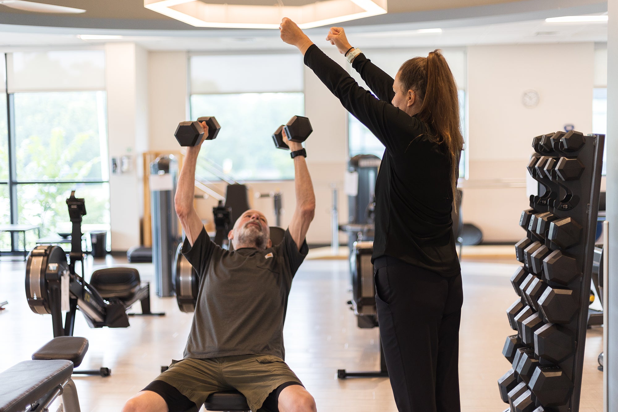 - Fitness equipment — Dumbbells, strength training machines, total body resistance exercise (TRX), strength training cables