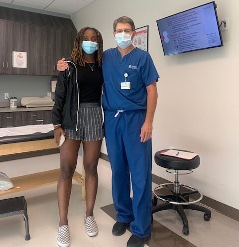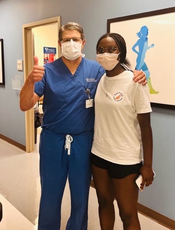 Olivia explains, “My rehabilitation after my ACL and meniscus surgery was nine months of rebuilding my leg strength with weights, agility and strengthening exercises. I had setbacks in my recovery, but I had a great team through Dr. Wood and physical therapist Menday who encouraged me and pushed me every step of the way. I didn’t know if I would get back to playing sports at times, but I was always assured that I would and could get back to playing sports if I put in the work.”