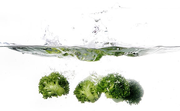 Produce that is likely to harbor dirt, bugs or harmful bacteria in crevices should be broken apart and washed piece by piece. Broccoli is a great example, as well as cauliflower and celery.