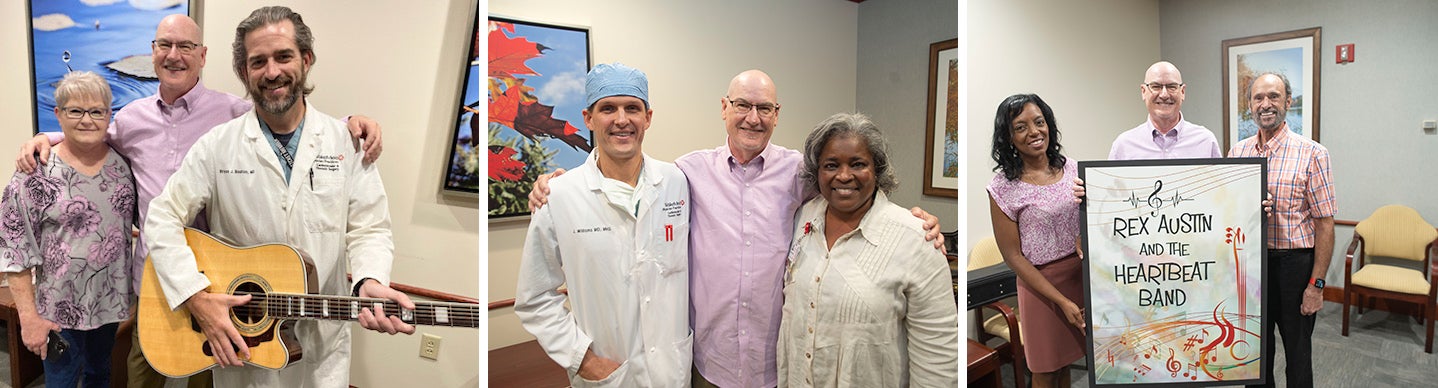 On August 22, 2023, Rex celebrated his 65th birthday. The day prior, he and his wife took the three-hour drive back to WakeMed to serenade Dr. Boulton with the team, including WakeMed Heart & Vascular Physicians Executive Director Dee Darks and Judson Williams, MD, WakeMed Heart & Vascular Executive Medical Director, who helped to facilitate the meeting. Rex had written a song to thank Dr. Boulton for saving his life and performed it with a couple of WakeMed staff, including the well-beloved WakeMed Heart & Vascular physician assistant Tom Devito, MS, PA-C.