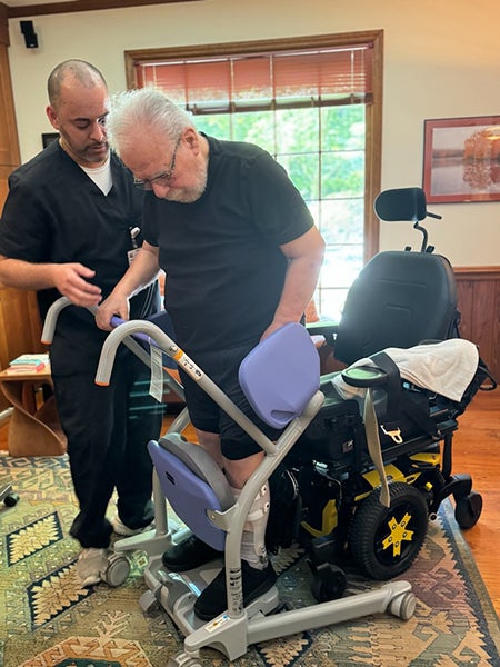 "We purchased a sit-stand machine to get Al into and out of bed as well as into and out of the wheelchair," Sarah notes.