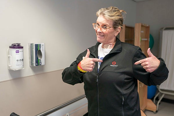 Of her time at WakeMed, Kim shares, "My physical and occupational therapy teams have been instrumental in my physical comeback to use exercise as part of my healing process. Additionally, the physical therapy team pinpointed that vertigo was a significant contributor to my accidental fall, leading to my TBI. Moreover, my speech therapy team put in considerable time explaining the healing journey and the impact of my TBI. Then, WakeMed nursing staff took excellent care of me from the moment I arrived in the emergency department to my time in the ICU, the step-down unit and rehab. They went above and beyond to ensure I was cared for and that my healing journey progressed."