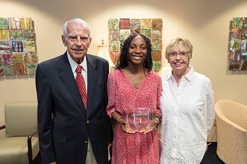 "It will bridge the gap between paying for college," Olivia shares, "and will help me focus on doing research and continuing to develop my community service initiatives.