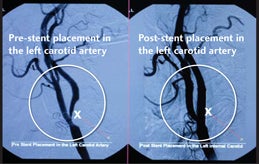 In this procedure, an interventionist threads a catheter containing a balloon to the site of the blocked carotid artery, and then inflates the balloon to open the artery.