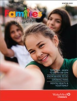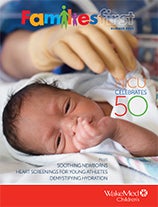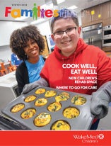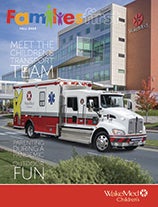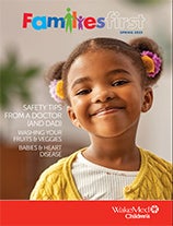 Families First is published quarterly for parents and guardians of patients, former patients and physicians associated with the WakeMed Children's Hospital and WakeMed pediatric services. Receive guidance on nutrition, sleep, social and emotional well-being and much more. Get the scoop on the latest medical advances in pediatric care. Learn about the specialized health care providers who work with our extraordinary patients.