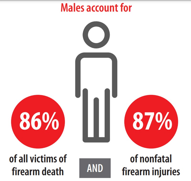 That is — more than 100 people die every day because of guns. Nearly 9 out of 10 people who die from gun violence are men and boys. Six out of every 10 deaths were firearm suicides and more than 3 out of every 10 were firearm homicides.