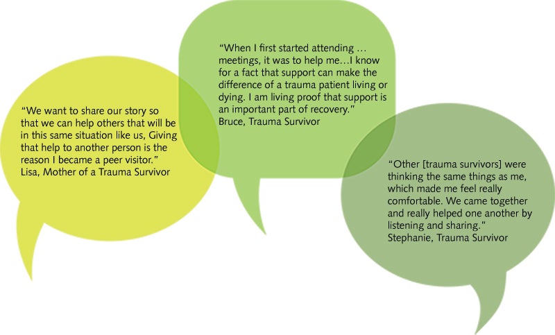 At WakeMed, we often call our peer visitors “trauma survivors” and are trained by the Trauma Survivors Network.