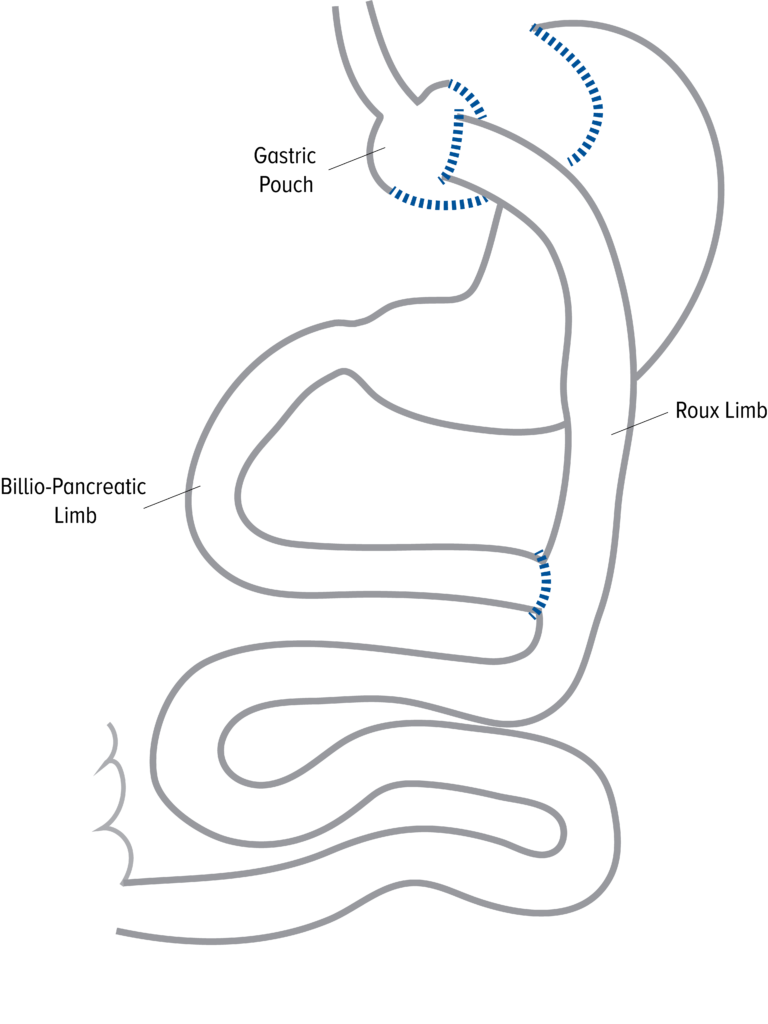 Roux-en-Y gastric bypass was first performed over 50 years ago and is still considered the gold standard for bariatric surgery today. This surgery limits the amount of food you can eat by creating a small stomach and changes the digestive tract by bypassing the remainder of the stomach and first part of the small intestines.