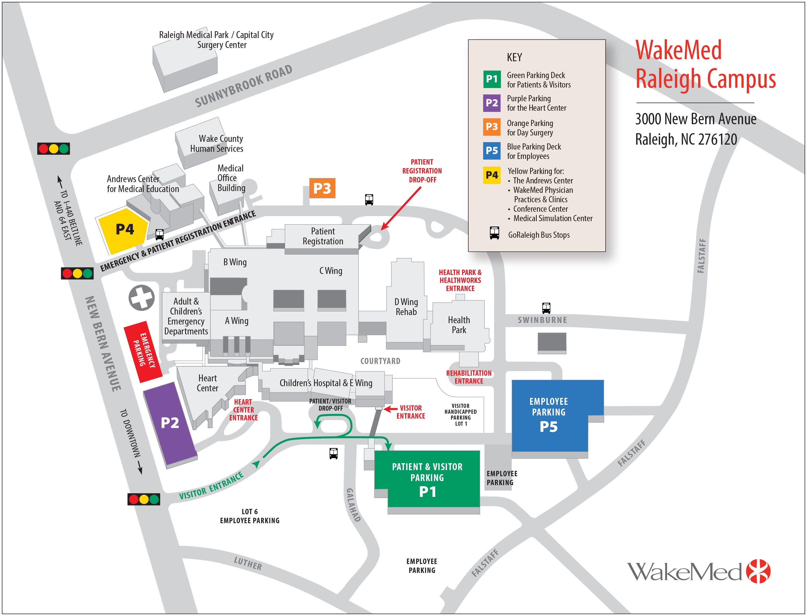 The Special Infant Care Clinic (SICC) is located on the first floor of the Andrews Center on WakeMed's Raleigh Campus. Parking is available in front of the building and under the building in the P4 Yellow parking deck.