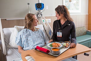 WakeMed North Food & Nutrition servers are at your service from 5 am to 11 pm. When you are ready for your meal, please select from the room service menu provided and call ext 18328 (18EAT) from the phone in your room. We can accommodate many dietary needs, and if you need help finding a selection, we can help you find options. Our food is prepared fresh by our expert culinary team, so please allow 45 minutes for delivery. Feel free to have your visitors bring in food to your room or order a guest meal at $8 per meal.