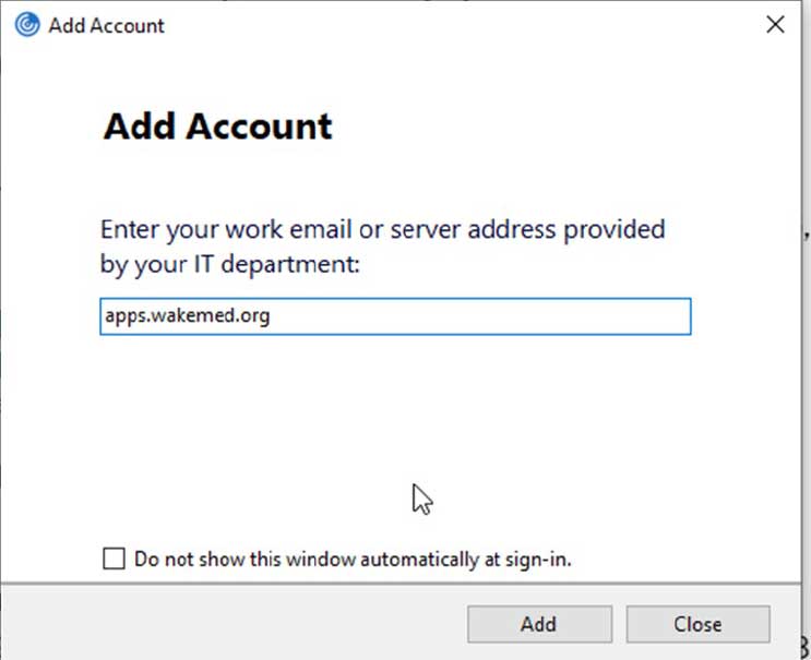 9. Enter apps.wakemed.org as the server address and tap Add.