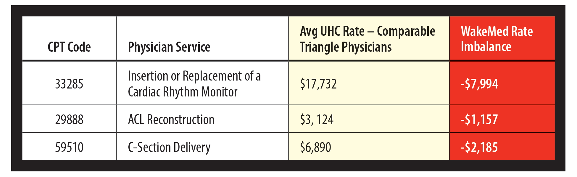 WakeMed submitted comprehensive commercial reimbursement proposals to UHC in late March that are intended to address longstanding, documented reimbursement disparities and align reimbursement rates more closely with what UHC already pays comparable high acuity providers in the Triangle.