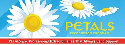 The PETALS Award is a new program administered by the Division of Nursing to thank those who partner with nurses in caring for our patients and families. It was developed as a complementary program to the DAISY Award, which recognizes nurses for providing exceptional patient care. Patients, family members and other staff members can nominate staff for the PETALS Award.