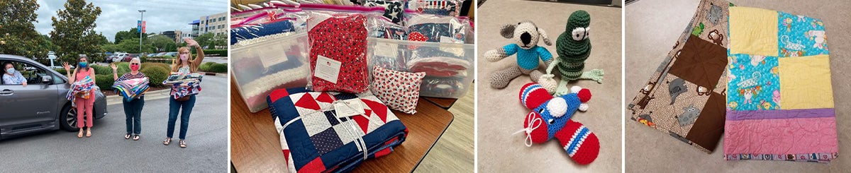 The contributions of handmade blankets, huggables, lap robes, booties, surgical caps, etc., brighten the lives of our patients and their families.