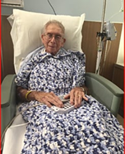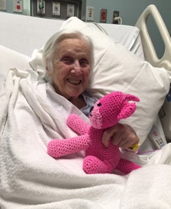 Roseanna at 100 years old was thrilled to receive this crocheted bear.